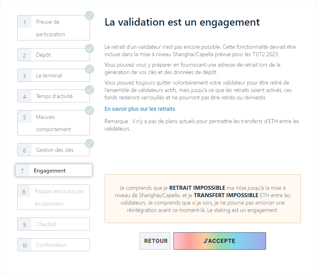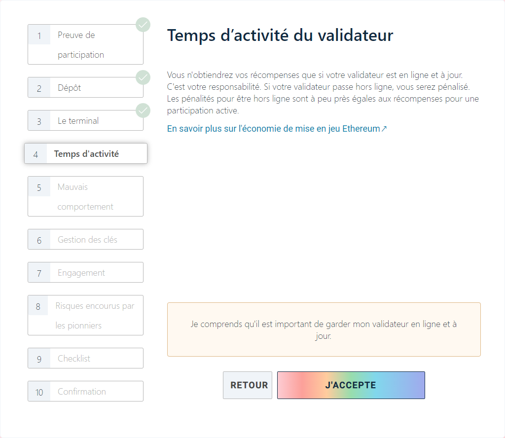 Les dépôts de staking sont traités via la plateforme de lancement ethereum.org :