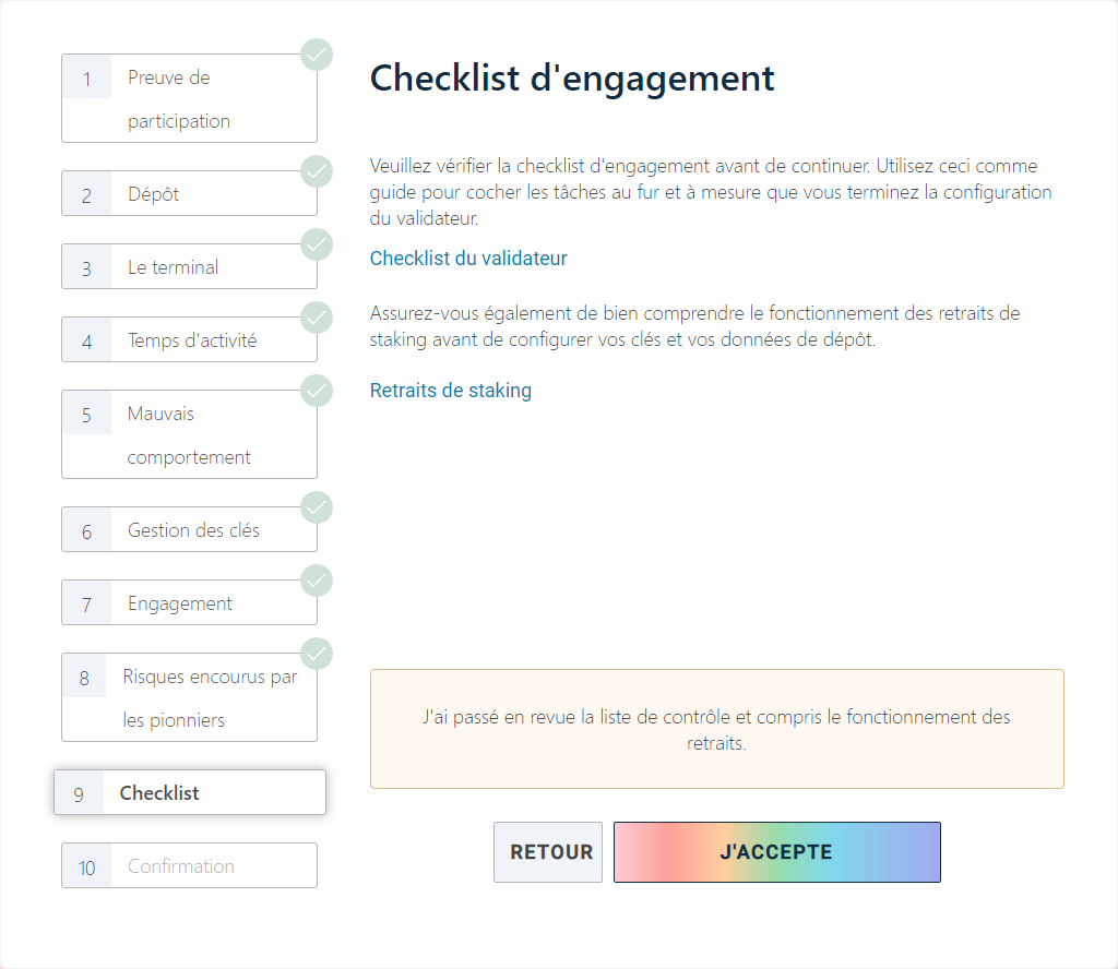 Félicitations ! Vous avez enclenché le processus pour activer votre validateur.