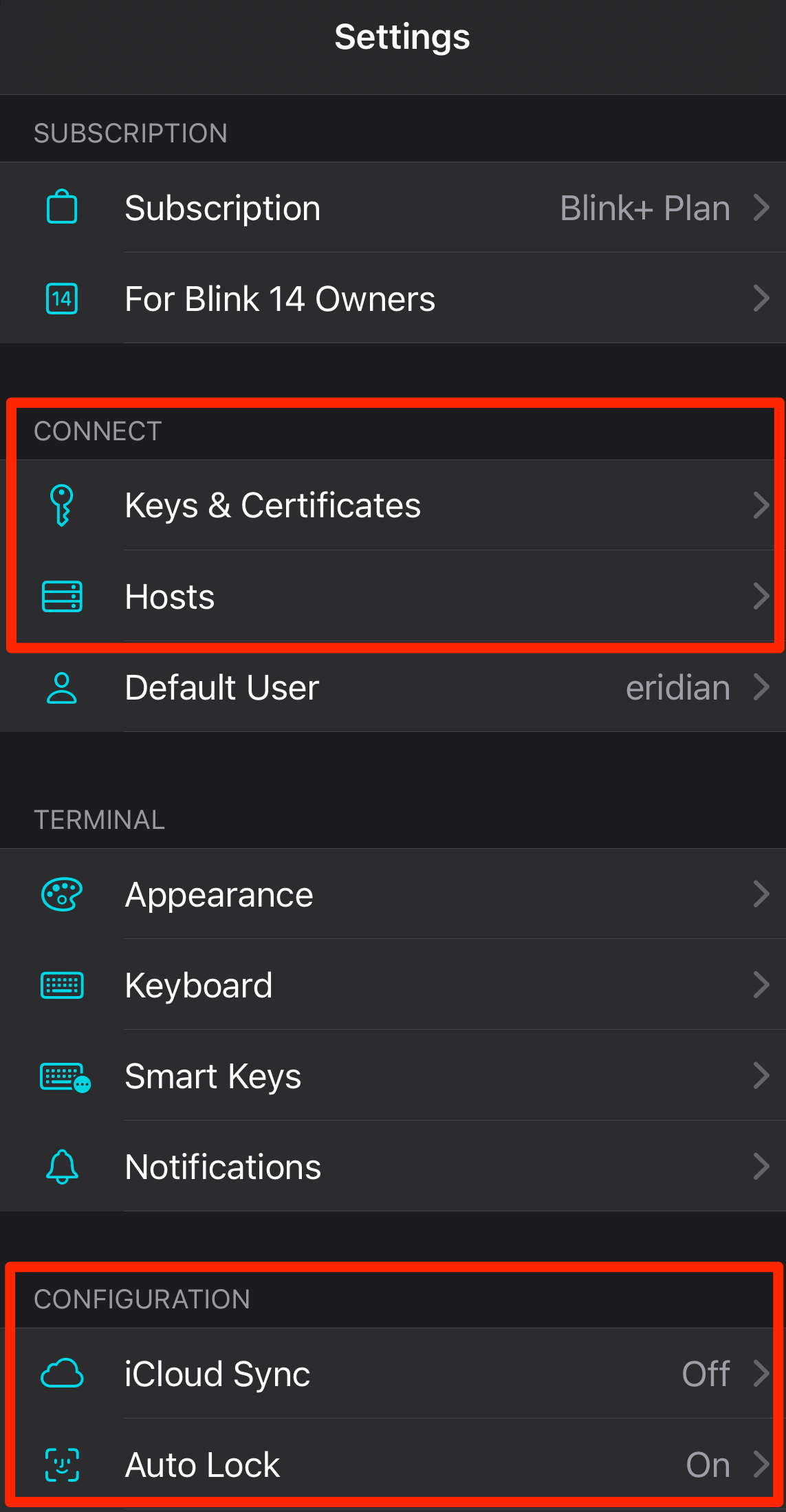 iCloud sync can be turned off if you don't want your SSH keys and passwords to be stored in iCLoud.